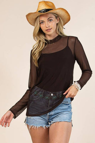 AV1230-GEMMA SOLID MOCK NECK MESH TOP: Black / S
