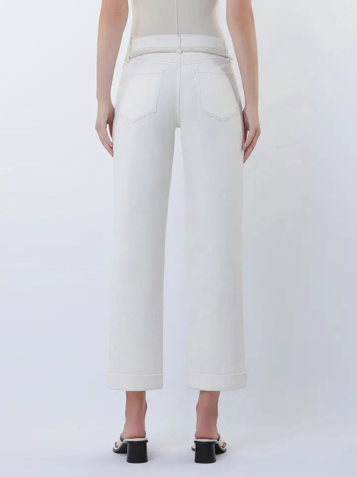 Elevate your denim game with these High Rise Rope Cord Cuffed Baggy Boyfriend Jeans. Crafted from comfort stretch denim, they feature a classic high rise waist with a distinctive cotton braided rope cord detail for an effortless, laid-back vibe. The 5-pocket construction keeps essentials secure, while the double cuff hem and cropped length create a modern silhouette that works with everything from boots to sneakers.