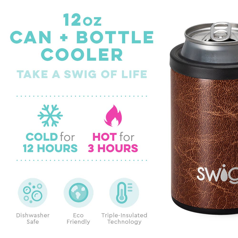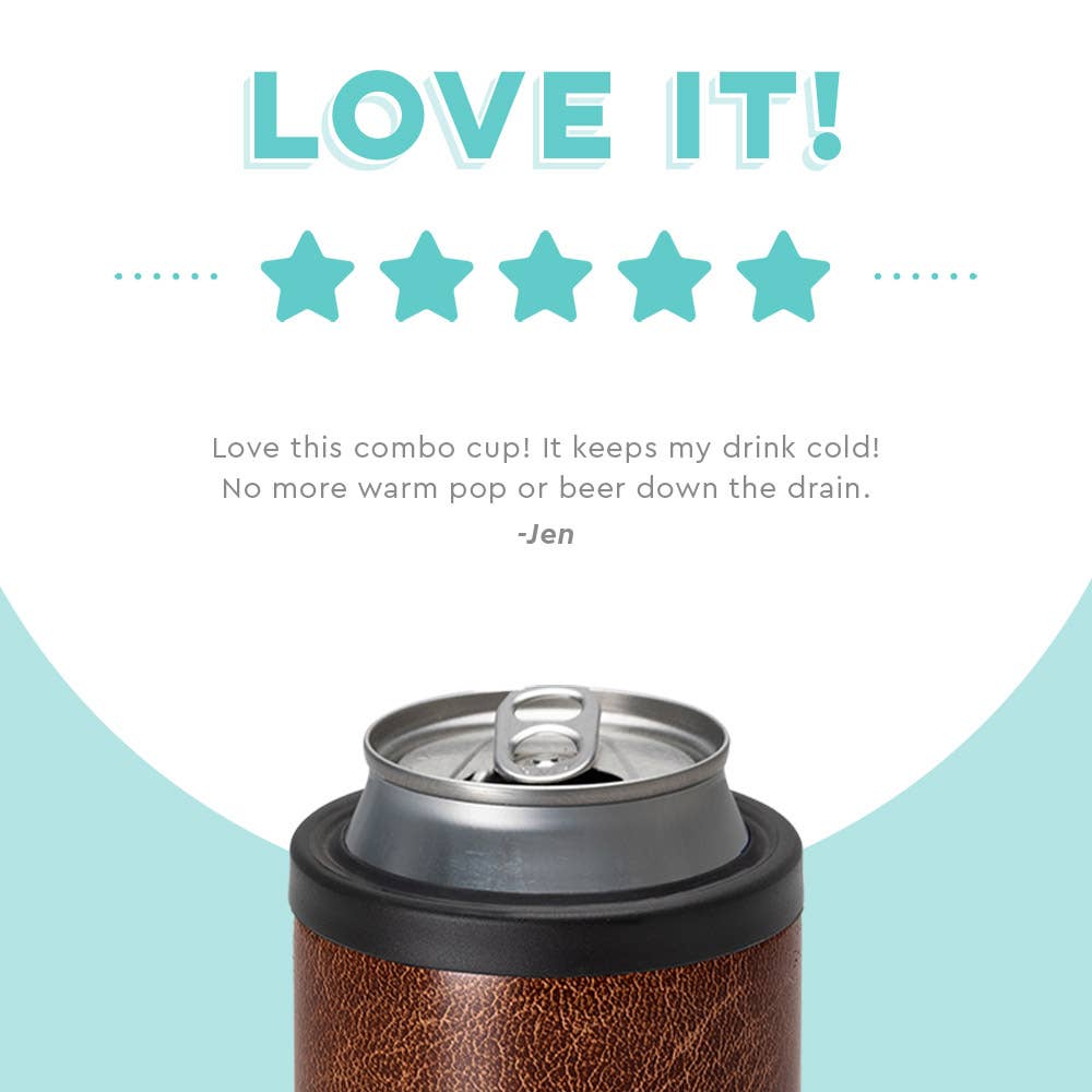 Cool til the last swig! Our can coolers keep can or glass bottle beverages cold for 9+ hours (but it won’t take that long to finish one). Simply twist off the top ring to insert can/bottle, then twist the ring back on to secure and enjoy! Have a cheers of charm and class with this matte finish that looks just like real leather. - Holds most 12oz cans and glass bottles including beer, soda, and sparkling water - Keeps drinks cold 9+ hours and hot 3+ hours - Fits most standard cup holders - Dishwasher safe, top rack only - Slip-free, scratch-free and noise-free silicone base - Triple insulation technology: double-walled, vacuum-sealed and copper-plated - Condensation free and non-breakable - Constructed of 5mm 304-18/8 stainless steel - Measures 4.75” H x 3” W (ring included); Base 3” in diameter; 0.4lb when empty - All of our prints are hand applied therefore slight variations will occur