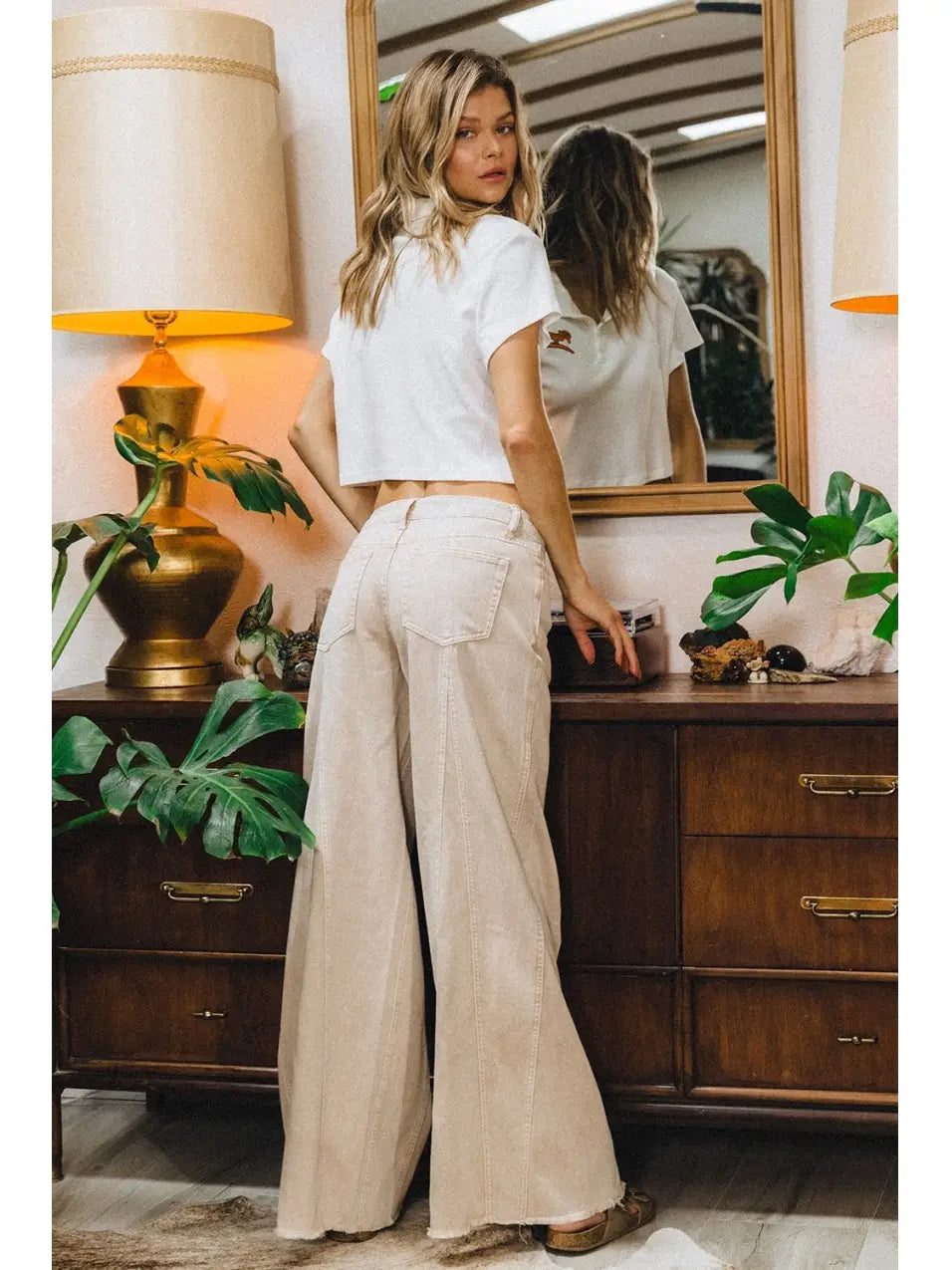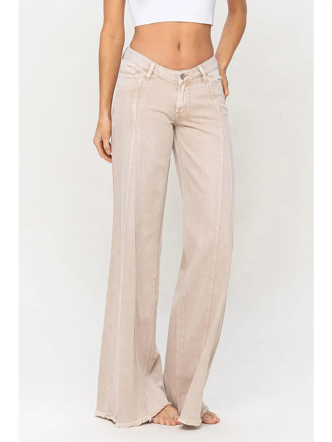 These playful jeans feature a V-shaped low rise fit with a baggy, wide silhouette and unique cut seam accents. Made from 100% soft, light denim cotton, they offer all-day comfort while making a bold style statement.