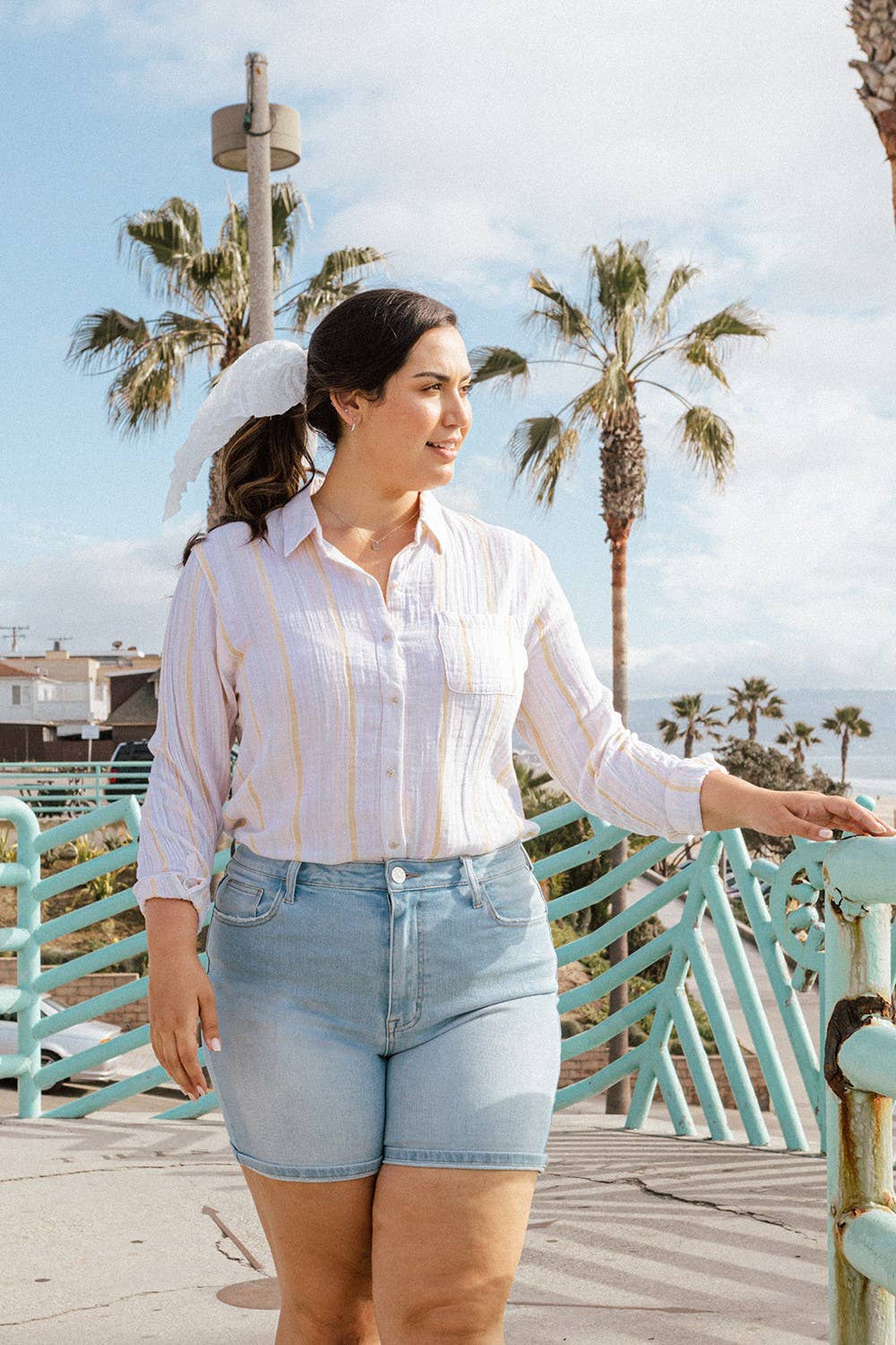 *CURVY* ROLL UP MOM SHORTS (SKU# V2906-P) - COMFORT STRETCH DENIM, SLOUCHY FIT, DOUBLE CUFFED HEM LINE, MOM JEAN, SUPER HIGH-WAISTED, 5 POCKETS 94.2% COTTON 4.7% POLYESTER 1.1% SPANDEX F. RISE: 13" / INSEAM: 4 1/2'' / LEG OPENING: 27 1/4''