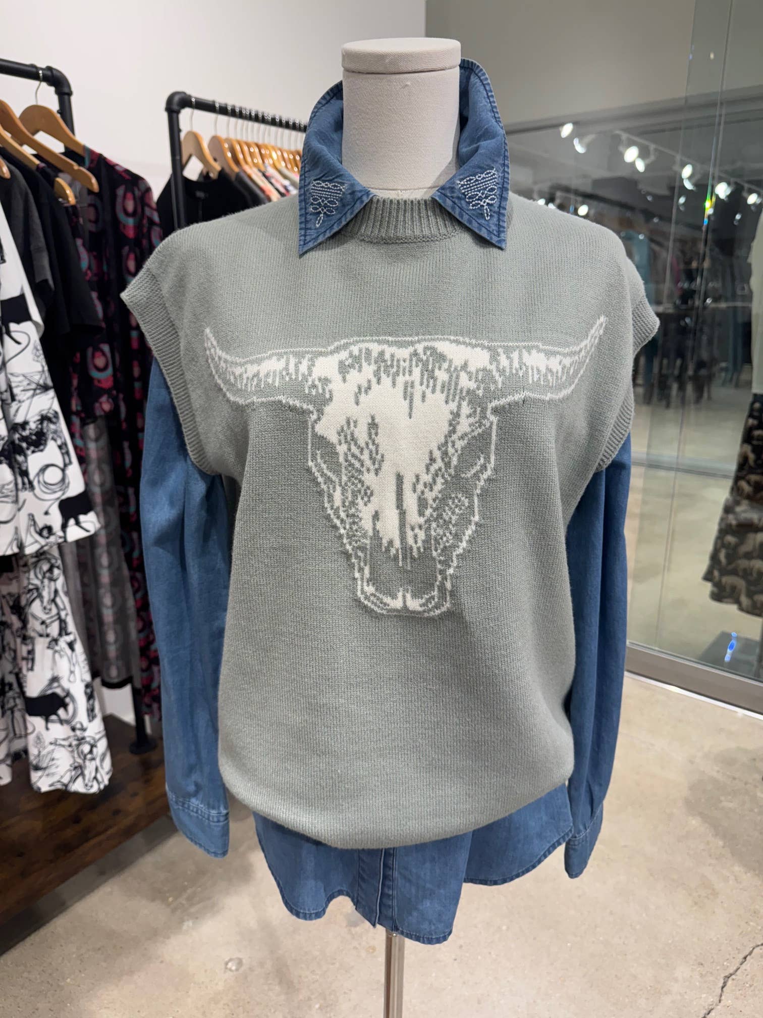 This soft, knit sleeveless pullover can be styled as a top or layered as a vest just like you see here. The long sleeve shirt is sold separately — this listing includes only the vest. It’s designed with a comfy, roomy fit.
