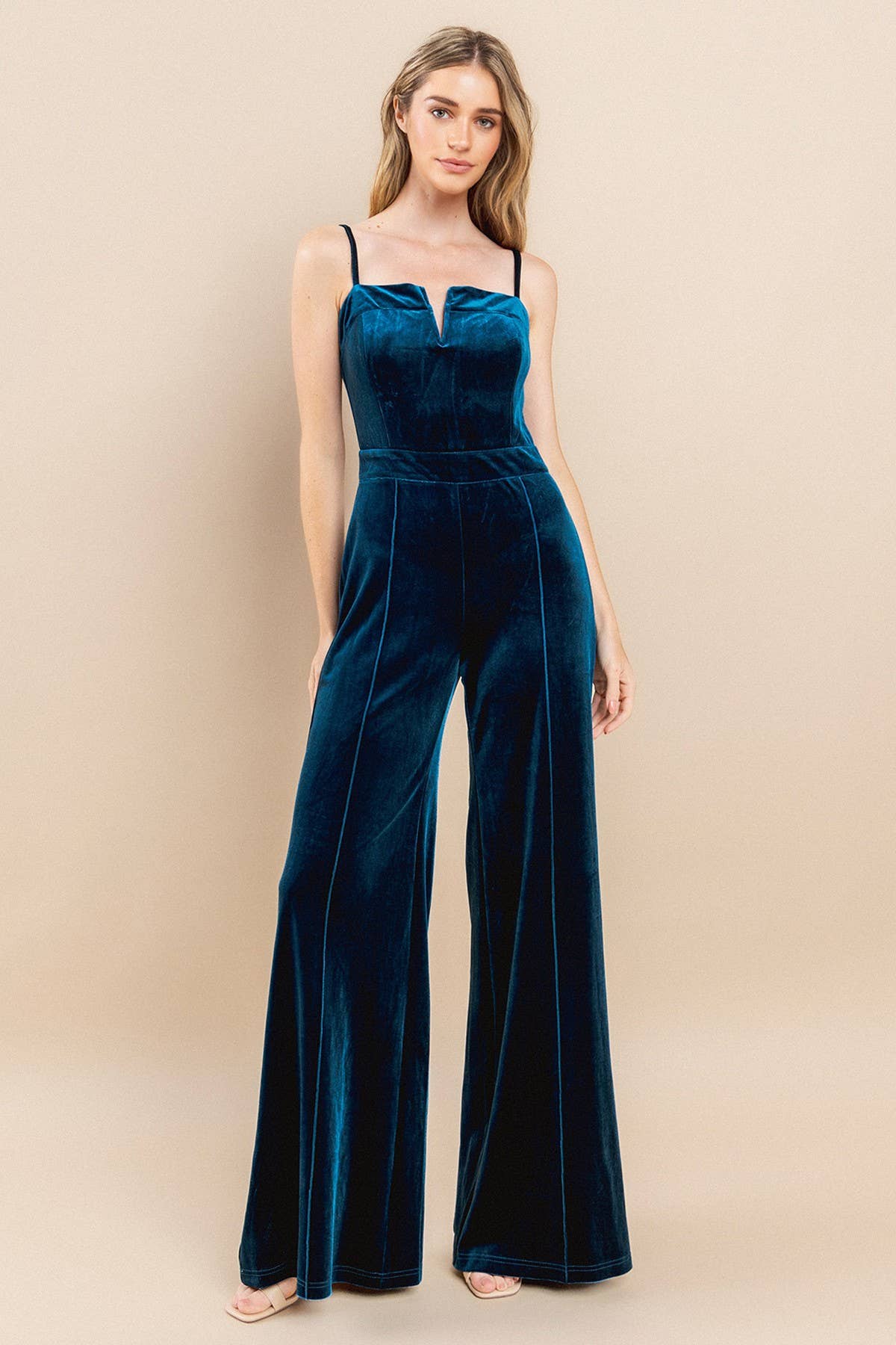 This jumpsuit is crafted from buttery soft velvet and boasts a structured design with straight legs. The zipper back adds a unique touch, while the adjustable straps offer the perfect fit.