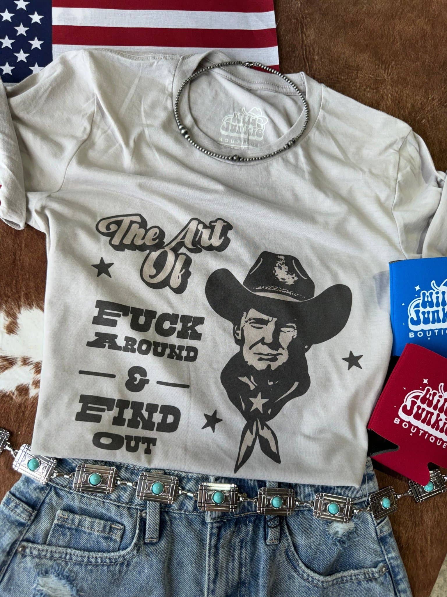 Stand out and show your support with Fuck Around and Find Out Trump Graphic Tee. This eye-catching tee combines political flair with a touch of western style, perfect for supporters looking to show their enthusiasm in a unique way.