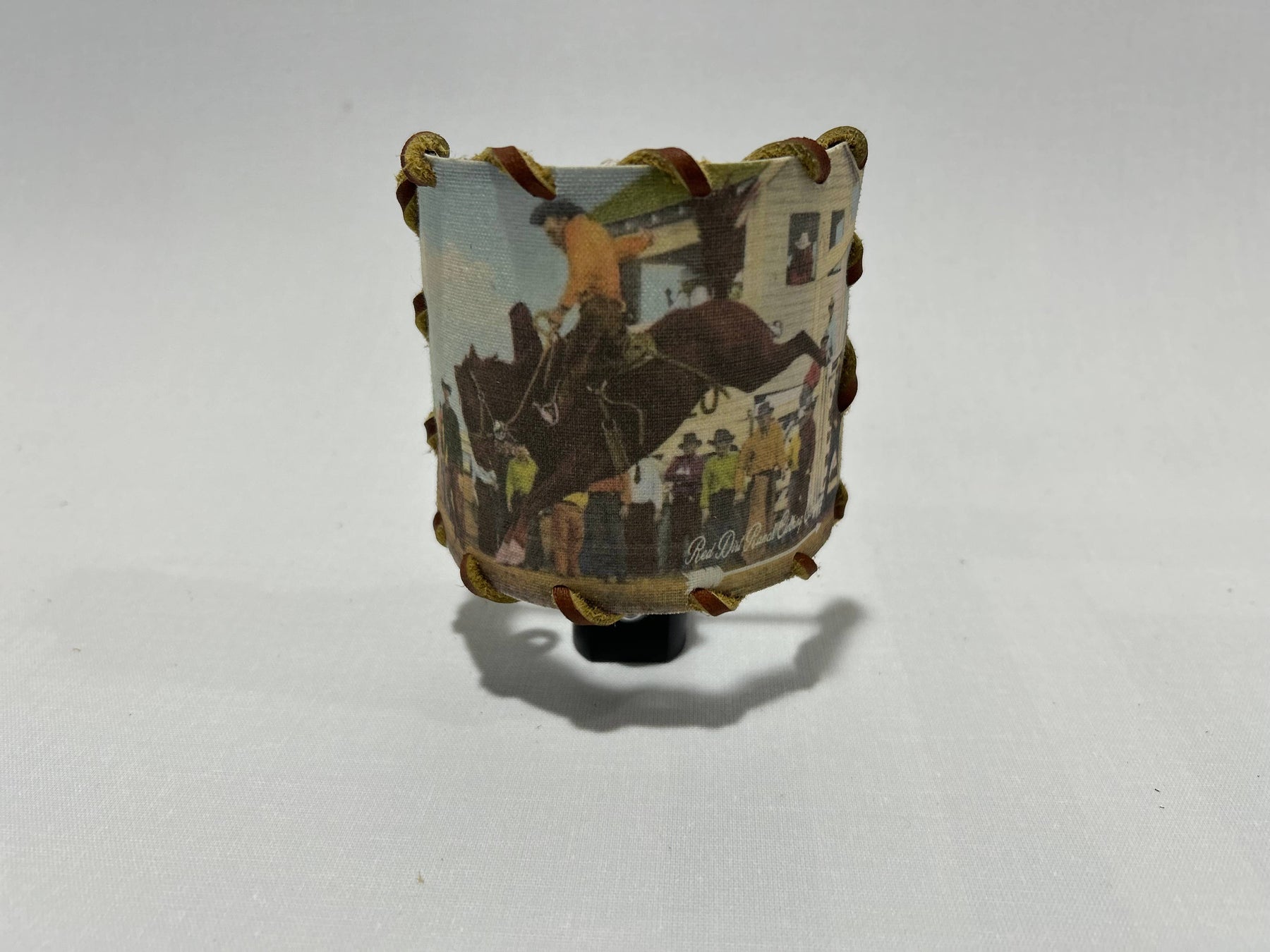 This Nightlight Let ‘er Buck Cowboy features leather Latigo lacing and measures 3.25 by 5 inches. It comes complete with a nightlight frame and module, designed to fit any standard C7 bulb. Perfect for adding a fun, western flair to any room!