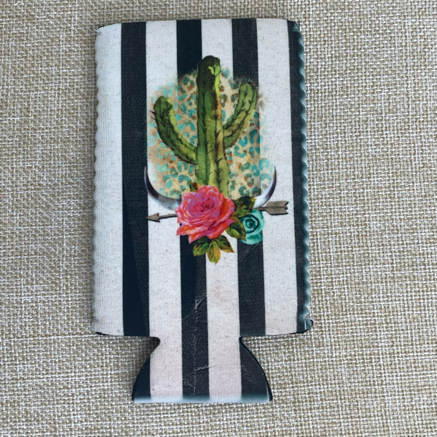 Keep your cold drinks insulated with this stylish Slim Black and White Cactus with Arrow Koozie. This slim can, 12 oz koozie is printed on both sides for a unique look and double insulation. Enjoy your drinks for longer in the perfect style.